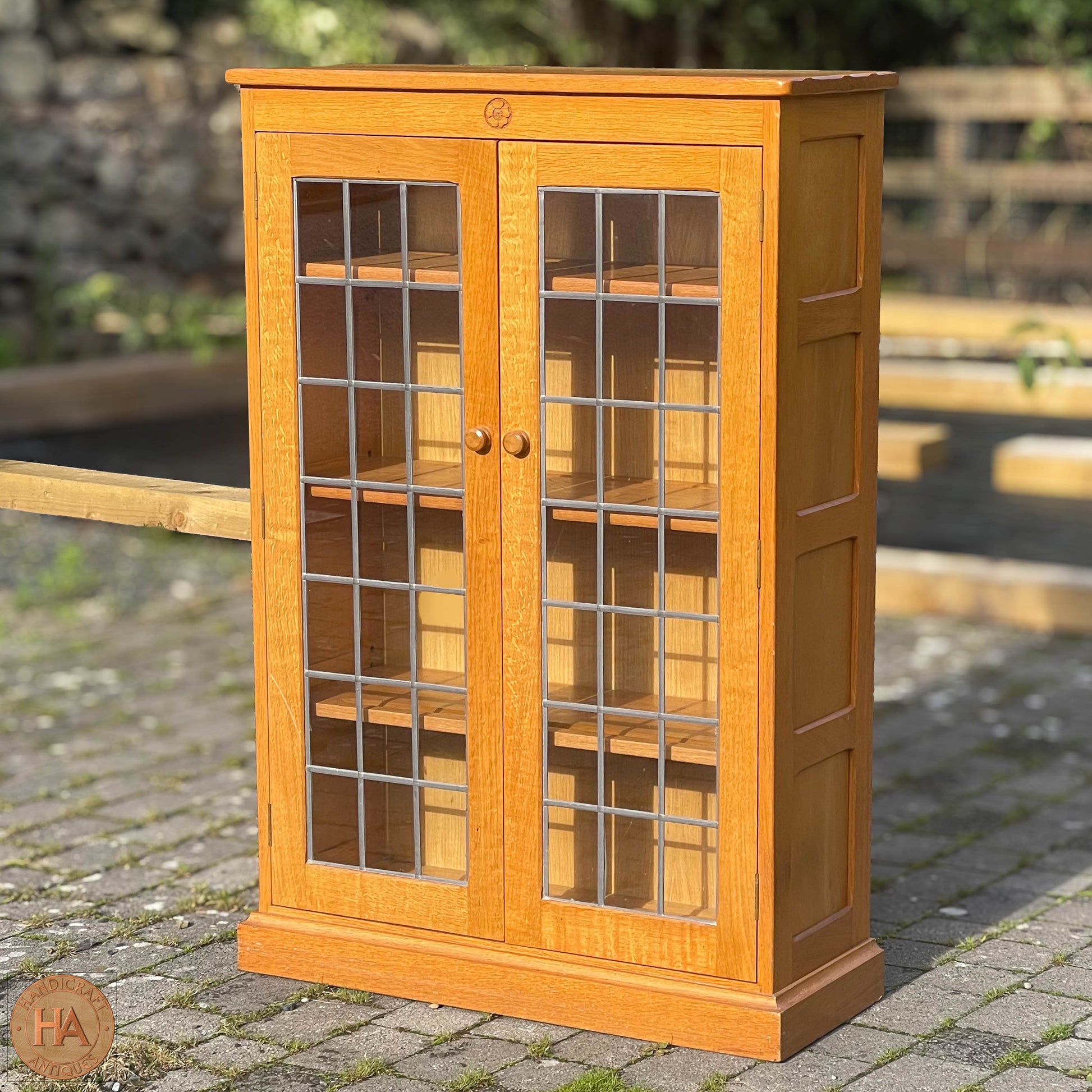 An Arts & Crafts Yorkshire School English Oak glazed bookcase by K. A. Wilkinson 1989. A lovely Yorkshire School bookcase providing good deep and high shelf space for books (or other items). Featuring: