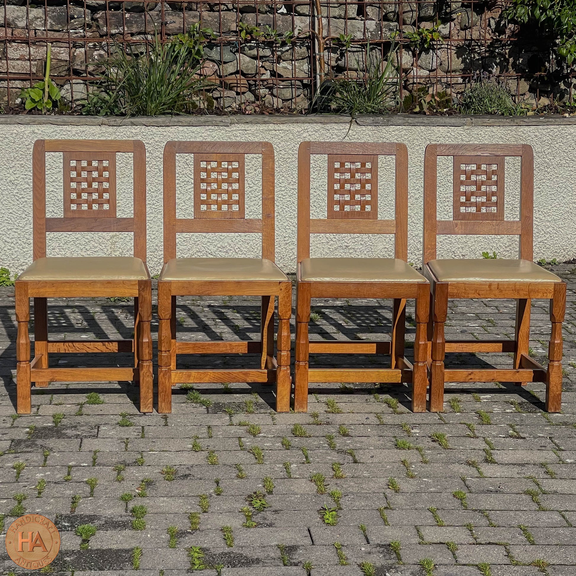 Set of 4 Derek ‘Lizardman’ Slater Arts & Crafts Yorkshire School Lattice Back English Oak Chairs