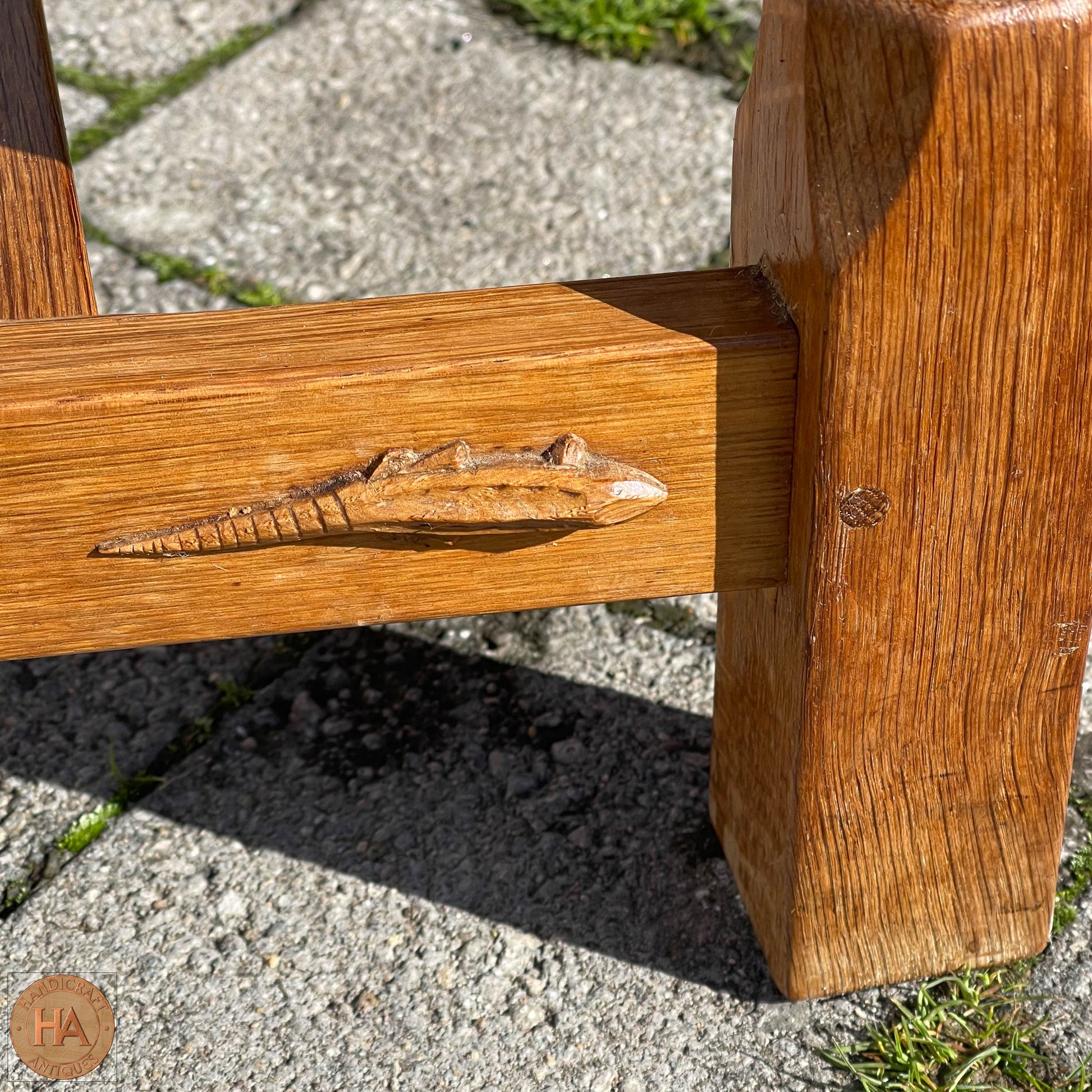 The Yorkshire School of the Arts & Crafts movement started with Robert 'Mouseman' Thompson's transformation from jobbing carpenter to master craftsmen. By the mid-1920s he had adopted his trademark mouse (now world renowned as a symbol of quality furniture) and had his own workshop busily employing several men. As the workshop grew and over the years many of the craftsmen have taken their skills and branched out and adopted a trademark of their own, a fox, a lizard, a fish, a rabbit to name but a few, and whilst some have closely stuck to the Mouseman designs others have taken the style and adapted it. Other craftsmen, unconnected to the Mouseman workshop, have also chosen the classic Yorkshire Oak style as their own. Typical Yorkshire school items are in English Oak, with traditional pegged joints and adzed surfaces