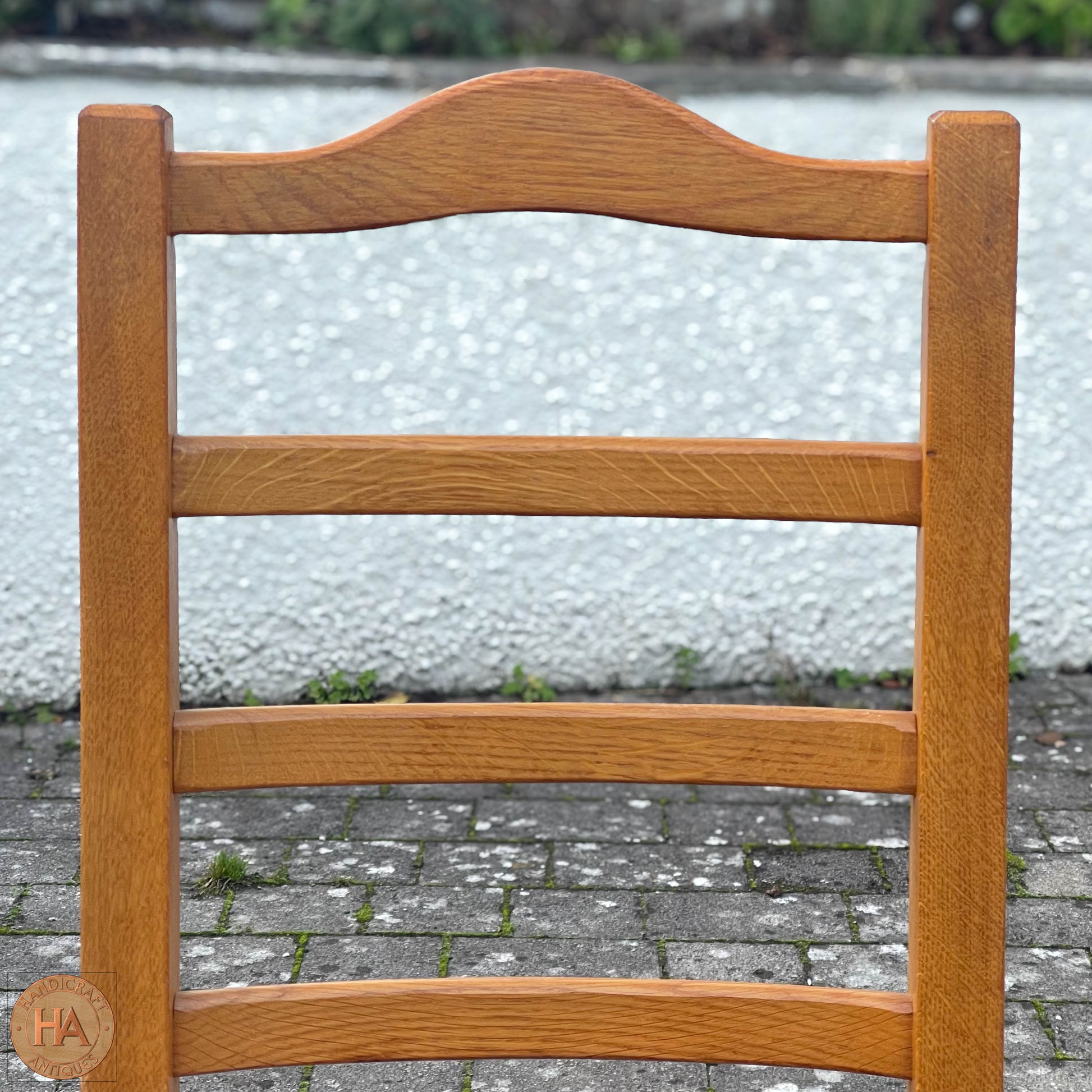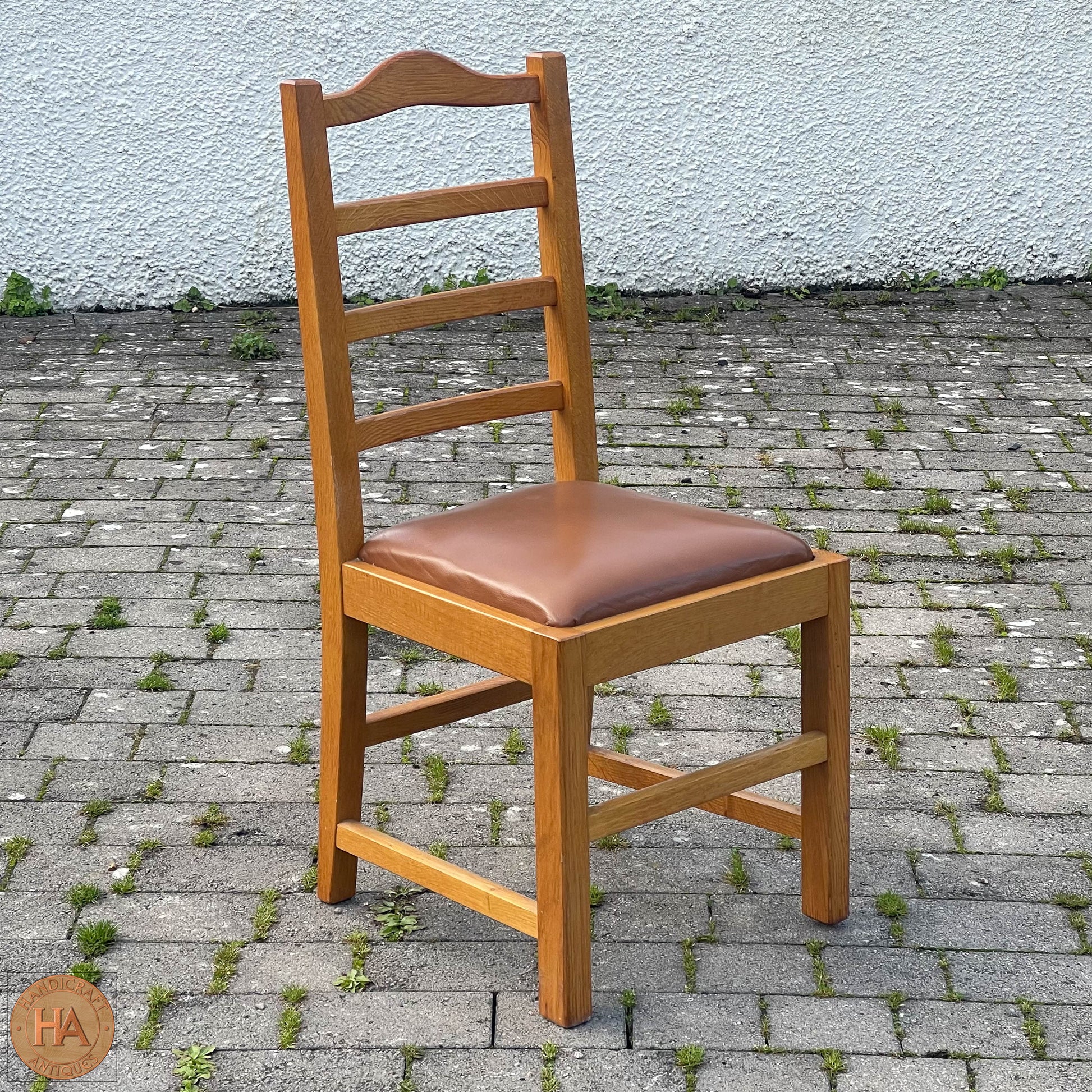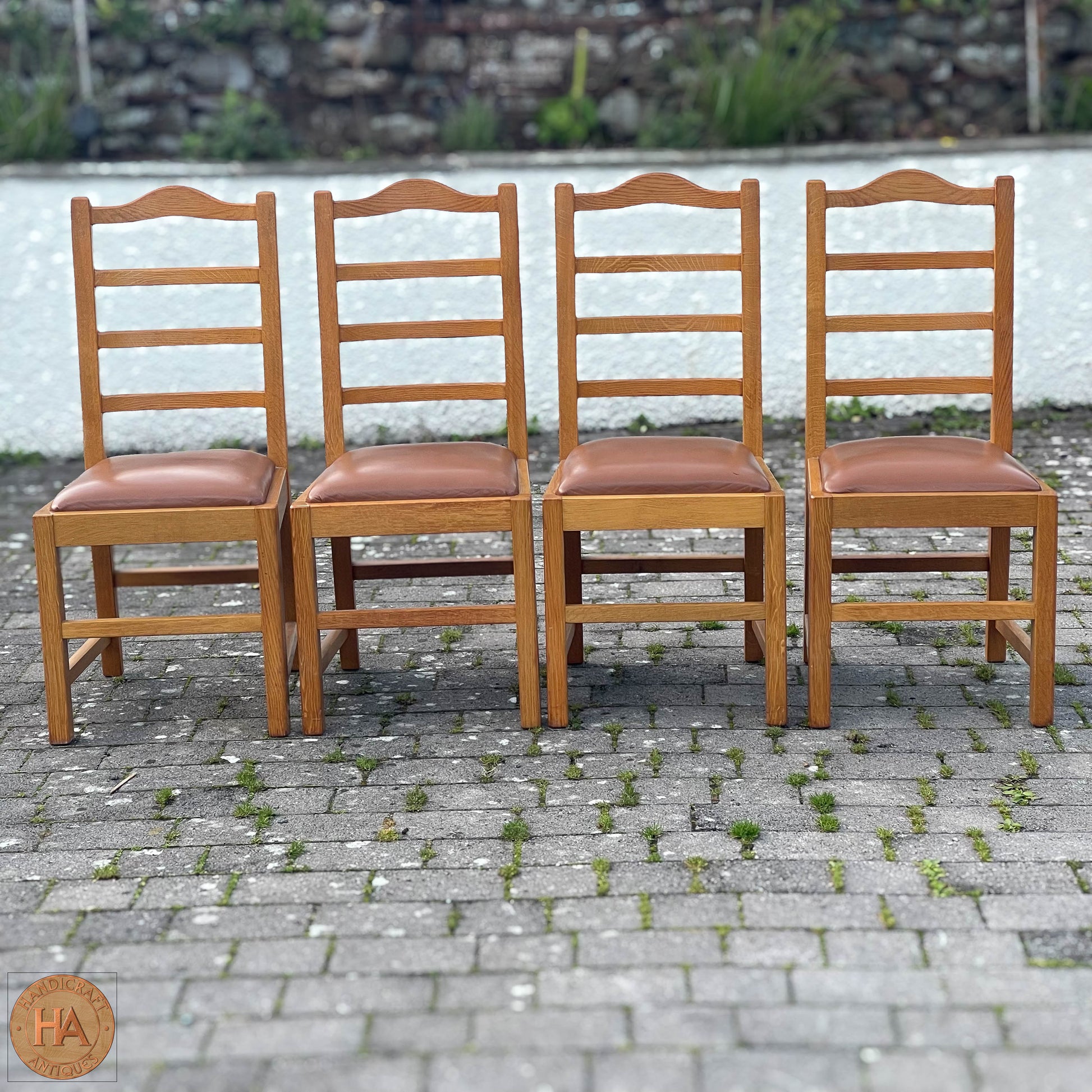 A set of 4 Arts & Crafts Yorkshire School English Oak chairs by K. A. Wilkinson 1989. A very tidy and sturdy matching set of chairs. Featuring: